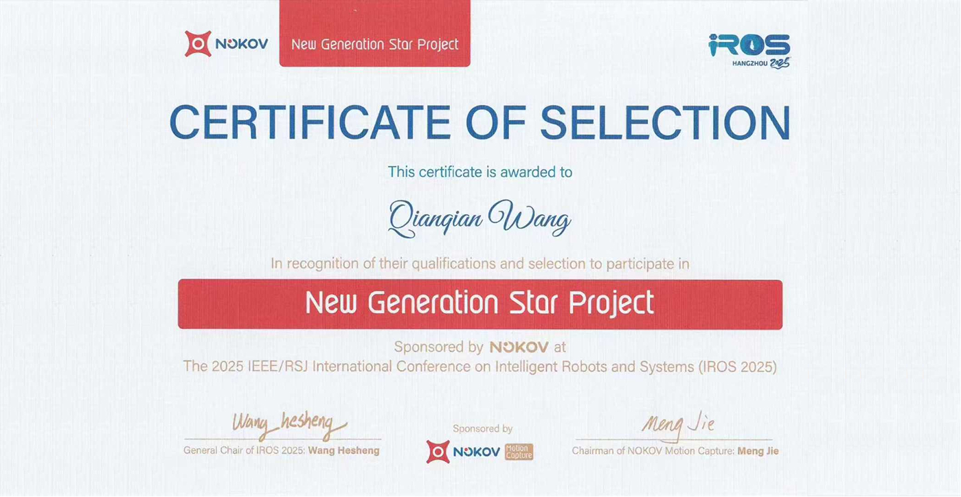 Congratulations to Professor Wang Qianqian for receiving the New Generation Star Project @lROS2025 ! [Link]